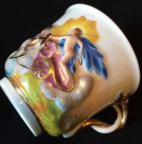Title (ebay affiliate link): Antique Capodimonte Porcelain Teacup Crown N Germany Chariot Twist Handle HP EXC