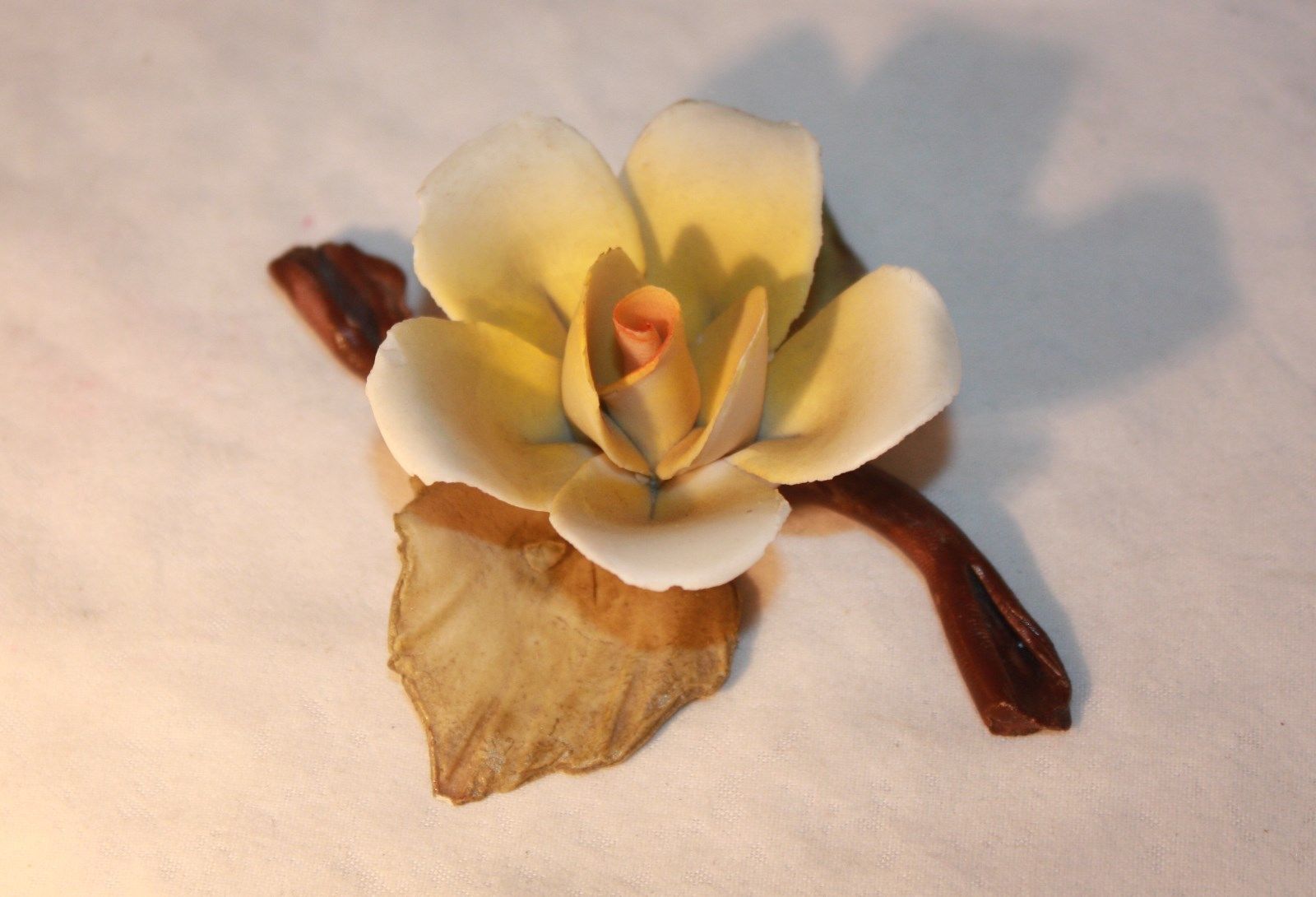 Title (ebay affiliate link): vintage capodimonte single pale yellow flower Napolean Italy