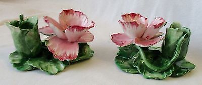 Beautiful Vintage Capodimonte Italy Candlesticks Handcrafted Flowers Ceramic
