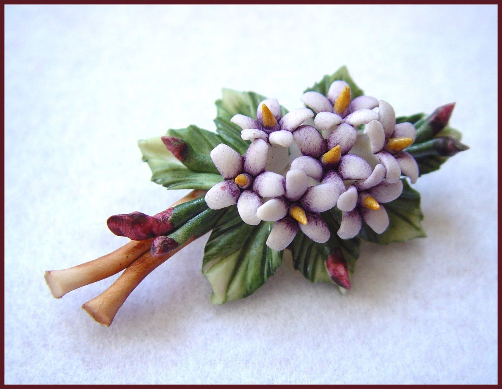 Vintage Jewellery - Vintage Capo Di Monte Porcelain Floral Bouquet Brooch Signed