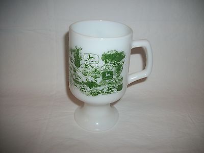 John Deere Milk Glass Footed Mug Covered in Logo's 5.5x3"
