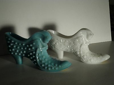 Fenton glass shoes 1 Daisy & Buttons milk glass 1 hobnail baby blue shoe slipper
