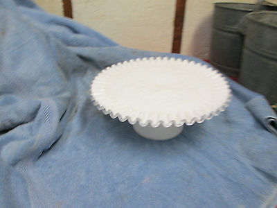 Vintage Fenton Milk Glass Spanish Lace Silver Crest Pedestal Cake Stand Plate