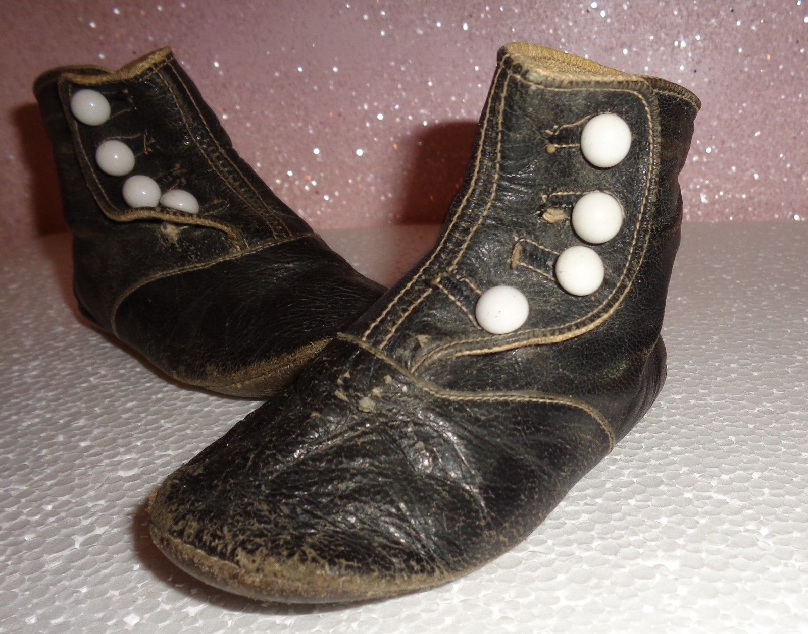 Title (ebay affiliate link): VICTORIAN LEATHER BABY SHOES-WHITE MILK GLASS BUTTONS-HIGH TOPS-GREAT FOR DOLL-X