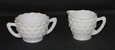 Hazel-Atlas Depression Milk Glass Solid White Cube Sugar Bowl & Creamer Set