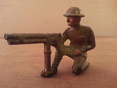 GREY IRON LEAD TOY SOLDIER CROUCHED MACHINE GUNNER