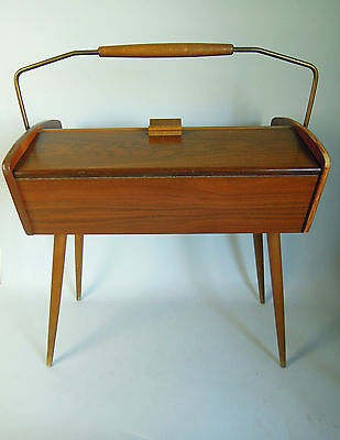 VINTAGE SEWING BOX TABLE EAMES DANISH MID CENTURY MODERN TEAK ART DECO 50s 60s