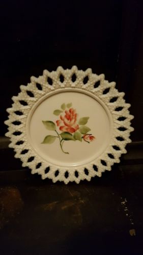 MILK GLASS 6" PLATE WITH FLOWER DESIGN