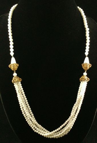 Title (ebay affiliate link): Vintage Designer Signed Miriam Haskell Multi-Strand Milk Glass Beaded Necklace