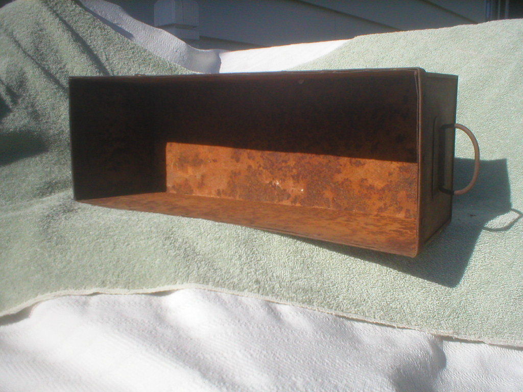 antique barn farm rusty metal box drawer parts tool bin handle wall hanger shelf