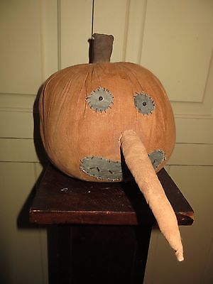 Primitive Pumpkin Head Grungy Handmade Fall Home Decor Folk Art Halloween