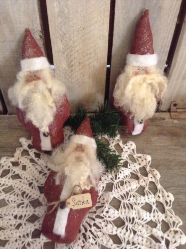 Title (ebay affiliate link): 3 Primitive Grungy Santa Ornies Christmas Folk Art