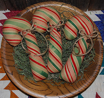 Title (ebay affiliate link): Primitive Red & Green Striped Christmas Candy Cane Tucks Bowl Fillers Ornies