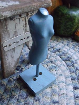 Primitive Vintage Miniature Dress Form on Wood Mount Shabby Worn Blue