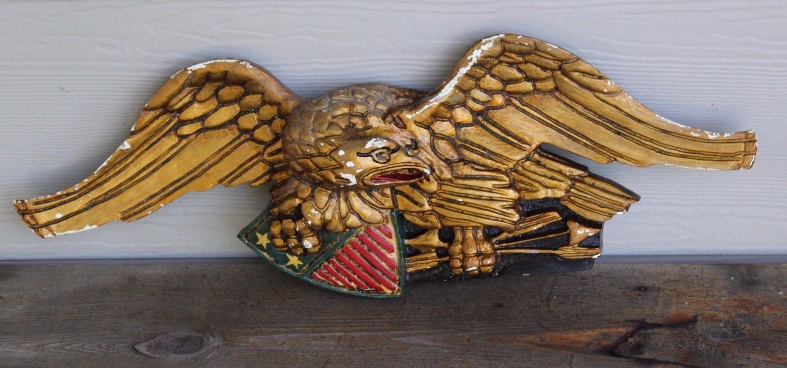 Title (ebay affiliate link): Vintage Mid 20thC Carved & Painted Wood Eagle w/ American Patriotic Shield 25"