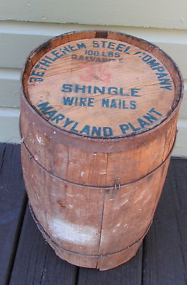 Title (ebay affiliate link): ANTIQUE BETHLEHEM STEEL CO. WOODEN 18" TALL NAIL KEG RUSTIC INDUSTRIAL