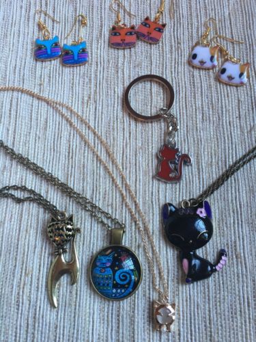 Title (ebay affiliate link): Lot Of 8 Vintage To Now Cat Earrings Necklaces Keychain