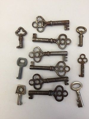Title (ebay affiliate link): (12) Small Antique Skeleton Clock Keys Barrel Shaft Unusual Shapes Very Ornate