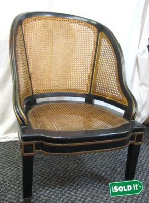 Title (ebay affiliate link): ANTIQUE LOW CHAIR ON WHEELS BLACK & GOLD w/ CANE SEAT