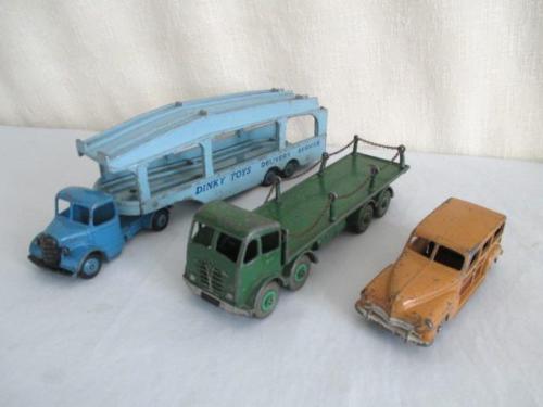Title (ebay affiliate link): 3 Old DINKY TOYS *Car Transport & Foden Truck *Woody Car *Vintage Toy