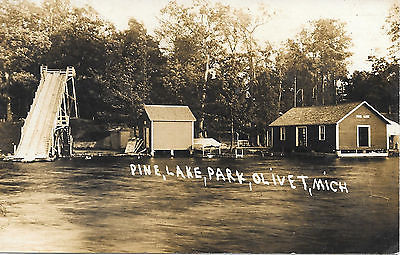 Title (ebay affiliate link): Pine Lake Park, Olivet , Mich pm 1910 rppc Water slide - boat houses Eaton Co