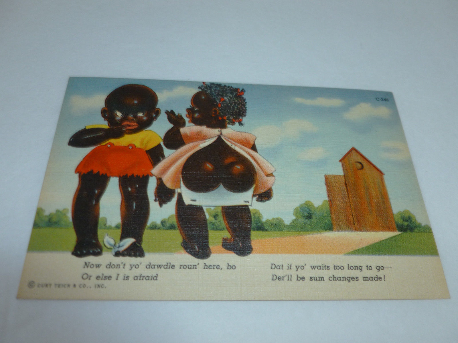 Title (ebay affiliate link): Black Americana Satire Linen Postcard By Curt Teich & Co. (Unposted Condition)