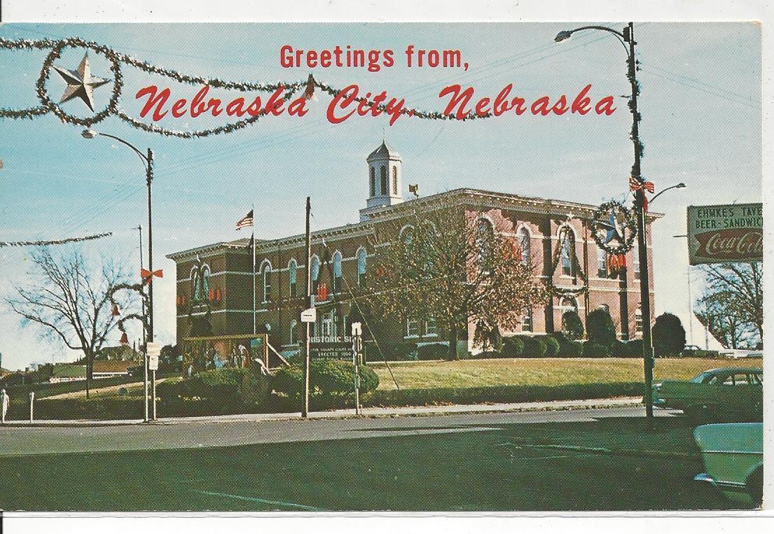 Title (ebay affiliate link): Otoe County Courthose at Christmas - Nebraska City, Nebraska- Vintage Postcard