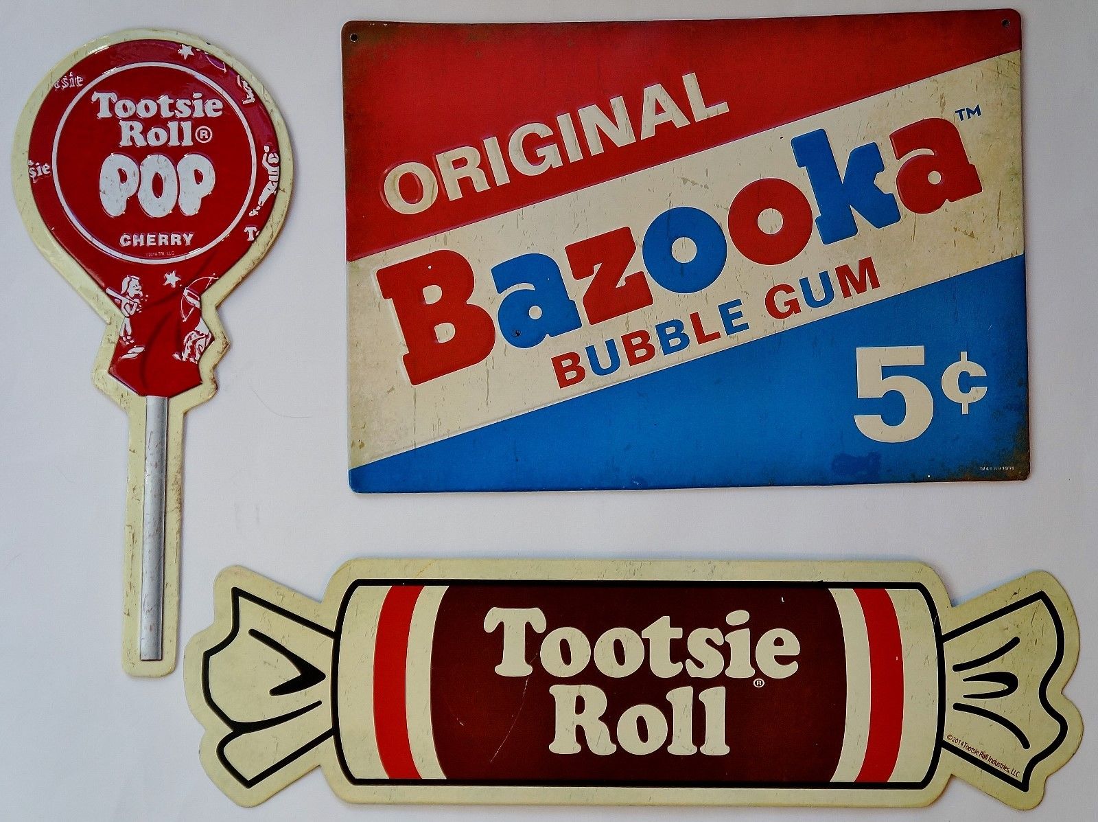 Title (ebay affiliate link): Vintage Style Candy Signs Lot of 3 ~ Tootsie Roll, Bazooka Gum & Tootsie Pop
