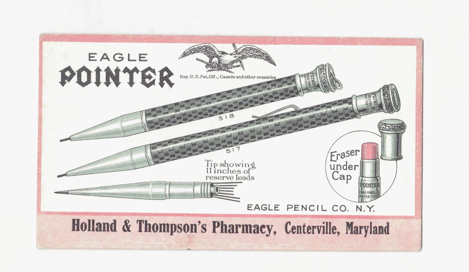 Title (ebay affiliate link): CENTERVILLE MD HOLLAND THOMPSON PHARMACY EAGLE MECHANICAL PENCIL INK BLOTTER