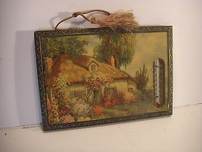 VINTAGE THERMOMETER PRINT COTTAGE SCENE THERMOPLAK USA