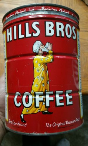 Title (ebay affiliate link): Antique Hill Bros. Coffee Tin Can 15 lbs. Copyright 1922-32-36 Red Can Brand Key