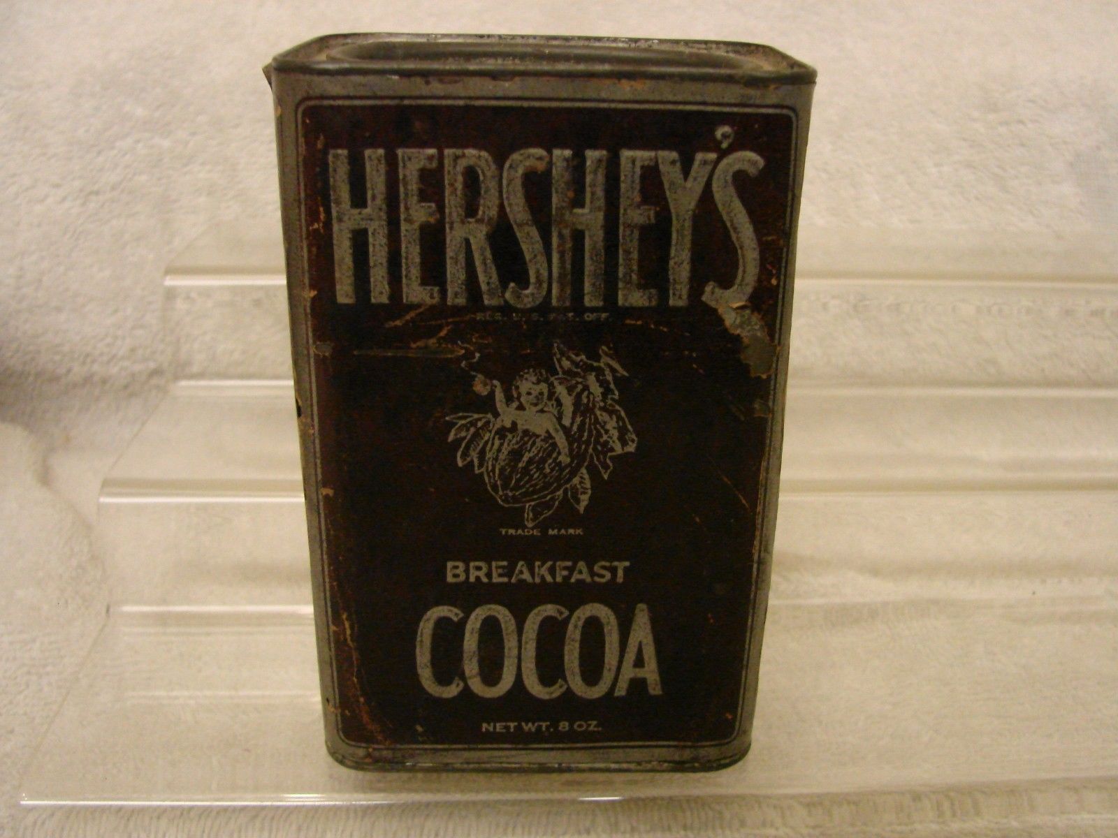 ANTIQUE HERSHEY'S COCOA TIN & EMBOSSED LID NRA GRAPHICS 8 OZ. PAPER & METAL NICE