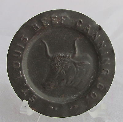 Antique Tin St Louis Beef Canning Co Advertising Miniature Plate Steer Bull