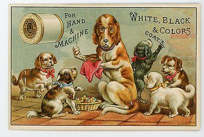 Anthropomorphic Dog sewing by hand & writing J & p Coats Victorian Trade Card