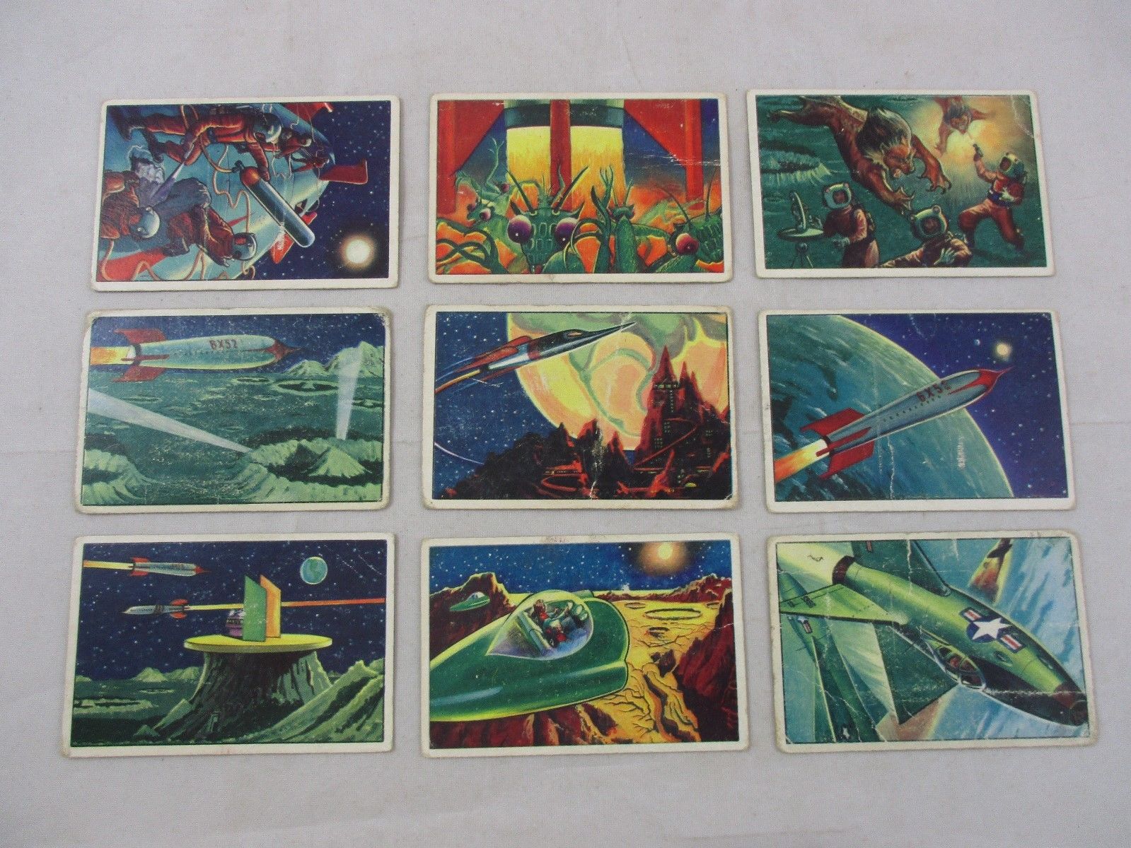 VTG 1951 Bowman Gum Jets Rockets Spacemen 9 Card Lot 6,9,14,16,17,19,26,29,35