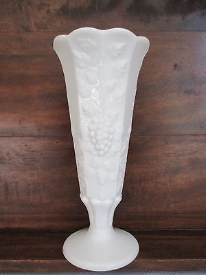 Westmoreland Vase White Milk Glass Paneled Grape Vine 8.25 Tall Vintage Wedding