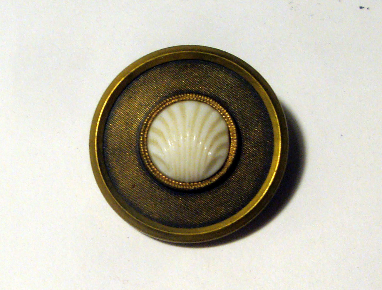 Title (ebay affiliate link): Antique MILK GLASS Button Set in Brass OME SCALLOP SHELL Picture Molded 1 3/16"