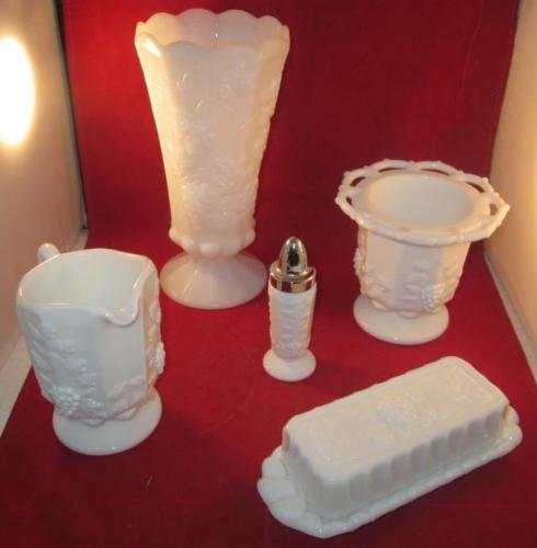 Title (ebay affiliate link): Vintage 5 pcs Westmoreland Milk Glass Lot Grape Panel Opalescent Vase Glassware