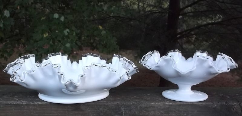 Title (ebay affiliate link): Vintage Fenton Silver Crest Milk Glass 12" BOWL and 4" COMPOTE CANDY DISH EC NR