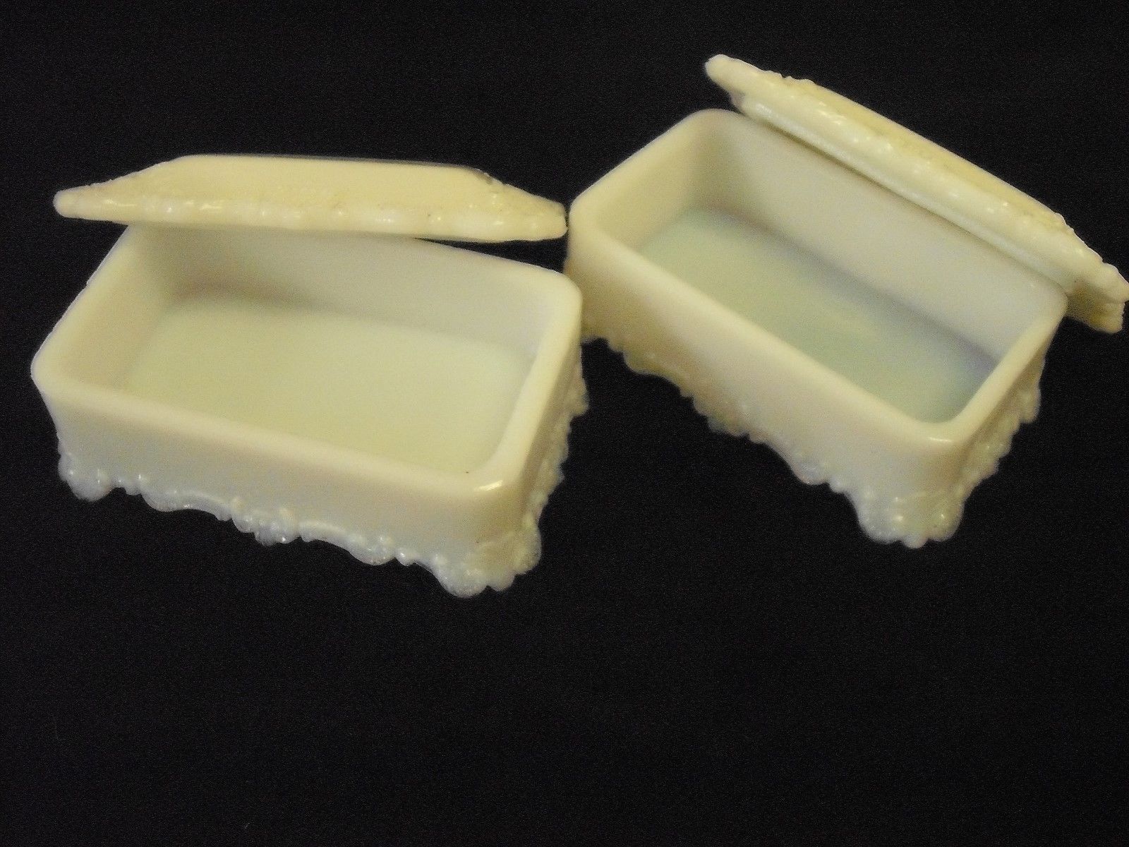 TWO Matching Vintage Victorian Milk Glass Trinket/Jewelry Boxes With Lid