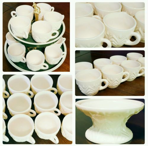 Title (ebay affiliate link): VTG JEANETTE PINK MILK GLASS-Punch Bowl Stand, 12-Open Handle Cups w/Mtl Hangers