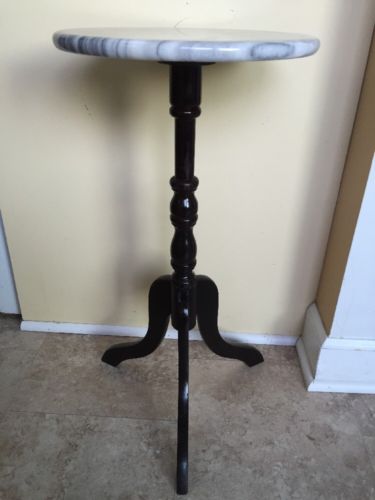 Title (ebay affiliate link): Vintage Small Round Pedestal Three-Leg Table/ Candlestick Plant Stand Marble Top