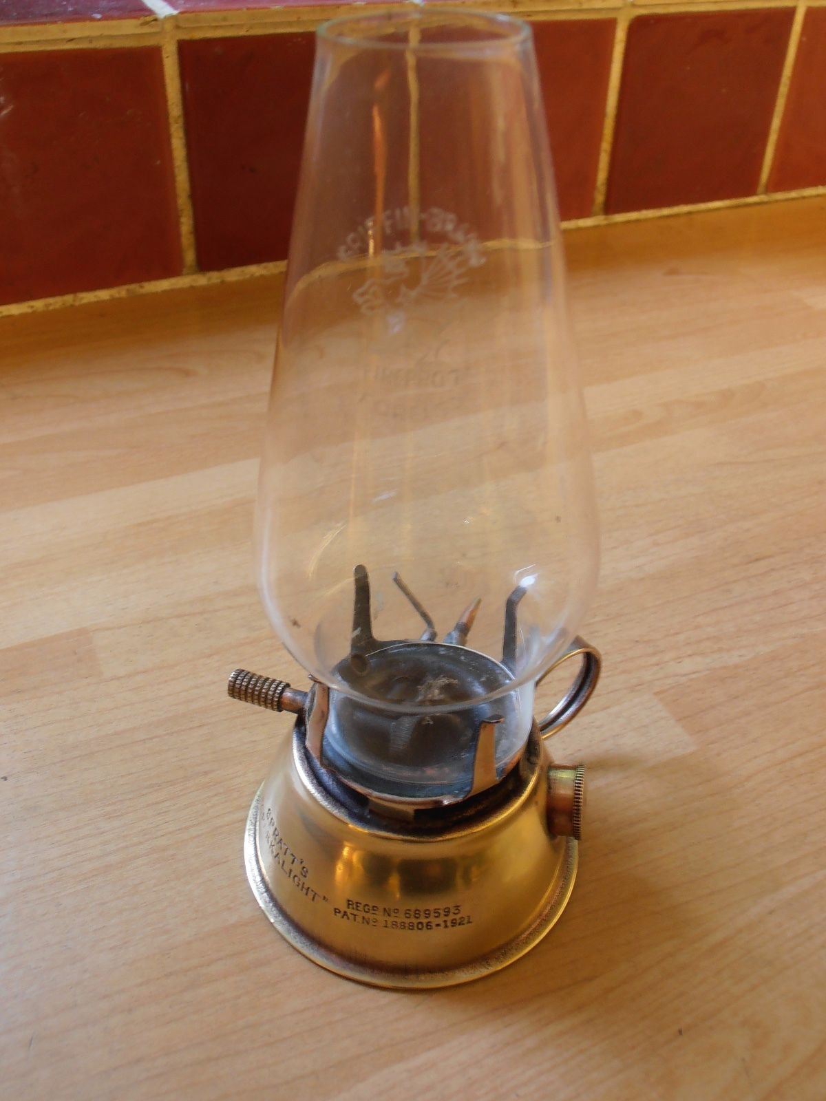 Title (ebay affiliate link): Vintage Spratts Brass Sparkalight Lamp circa 1920
