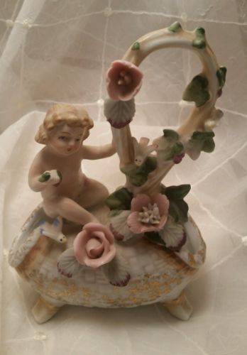 Title (ebay affiliate link): Antique Capodimonte Putti Cherub Dresden Flower & Bird Bisque Basket CN Mark
