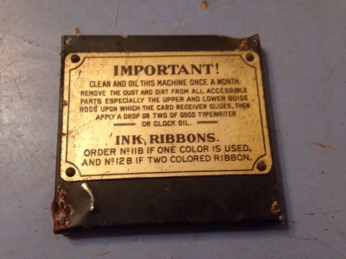 Antique International Time Recording clock Paperwork Holder Instructions Plaque