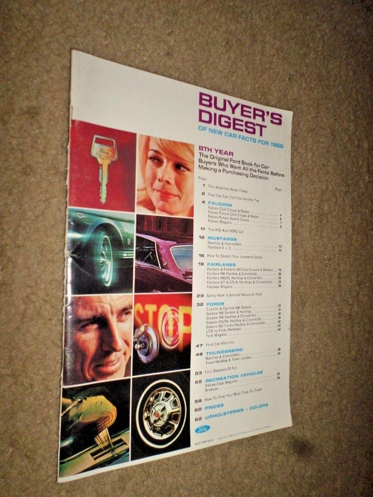 Title (ebay affiliate link): W 1966 Ford "Buyer's Digest" Car Dealer Sales Brochure Mustang Fairlane Galaxie+