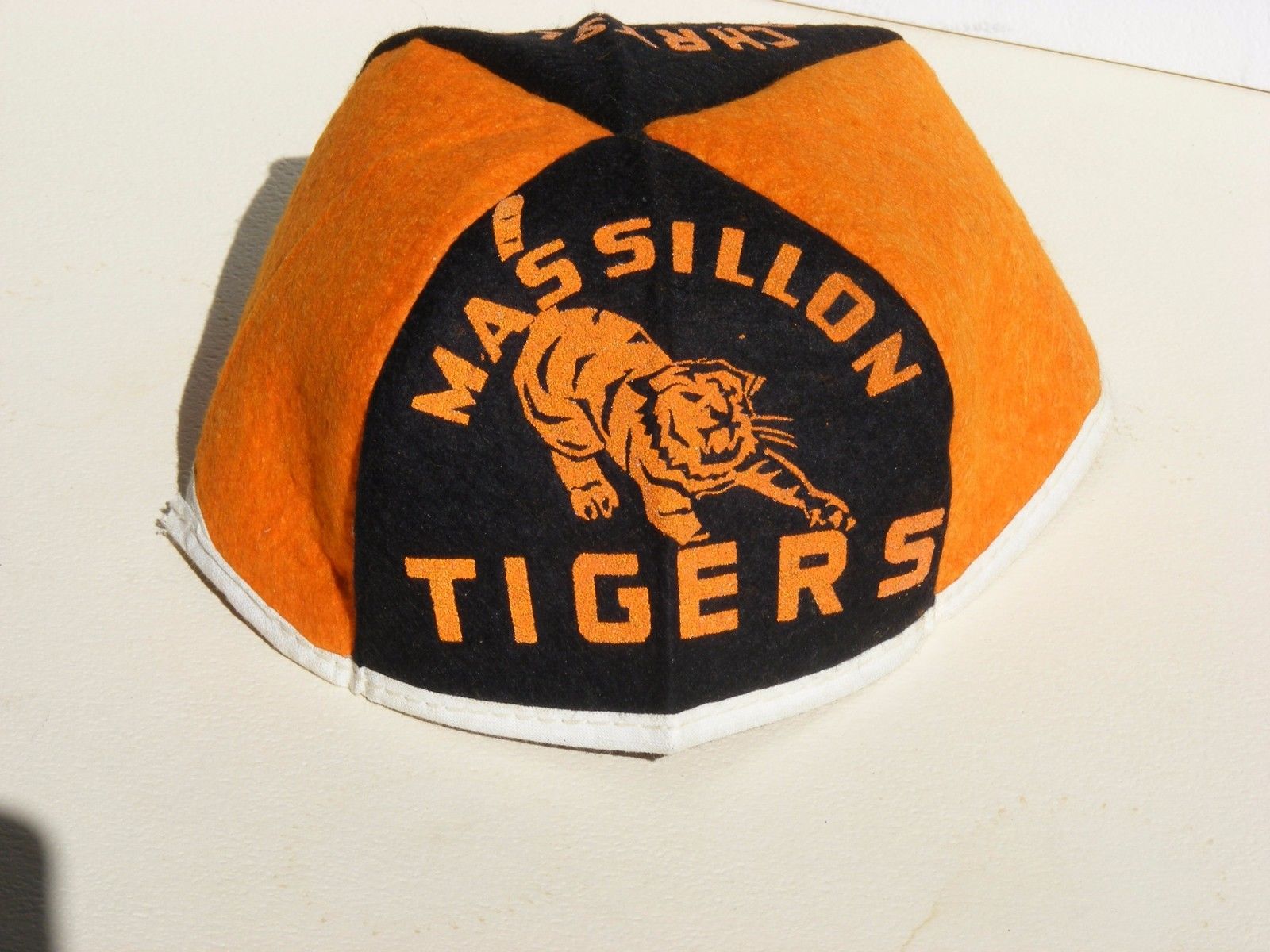 Title (ebay affiliate link): Vintage 1940's/50's Massillon Tigers C.S. Henrich Chrysler Plymouth Felt Beanie