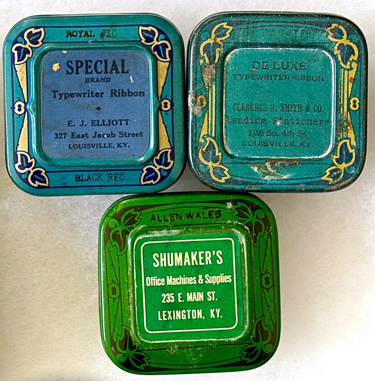 3 KENTUCKY typewriter ribbon tins