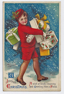 Title (ebay affiliate link): LOVELY EMBOSSED CLAPSADDLE CHRISTMAS POSTCARD-DELIVERY BOY & GIFTS