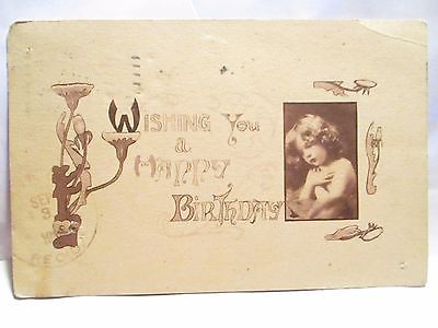 1911 SEPIA BIRTHDAY SERIES POSTCARD " WISHING YOU A HAPPY BIRTHDAY! " W/ CHERUB